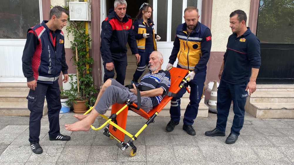Ekiplerin teselli etmesiyle sakinleşen yaşlı adam, sedyeyle ambulansa alındı. Felçli adam ambulansla Atatürk Devlet Hastanesi'ne kaldırılırken diğer ekipler de olay yerinden ayrıldı.