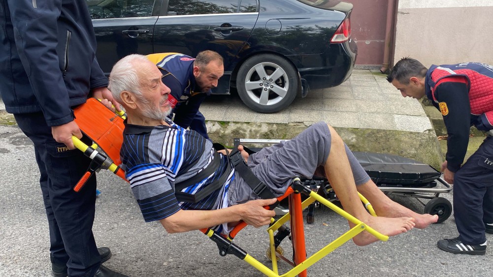 Merdivenle balkondan giren itfaiye ekipleri yaşlı adamı koltuğun üzerinde ağlar vaziyette buldu. Kapının açılmasının ardından eve giren sağlık ekipleri Muammer Cengiz'in tansiyon ve şekerini ölçtü. Değerlerin yüksek çıkması üzerine yaşlı adamın acil servise götürülmesi kararlaştırıldı.