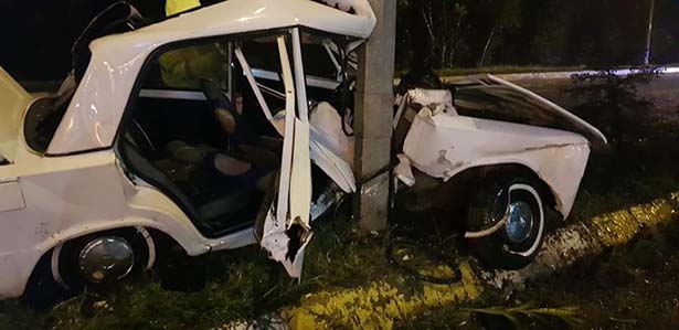 aydınlatma direğine çarptı. Araç adeta hurdaya döndü. Sürücü E.D. ise sıkıştığı