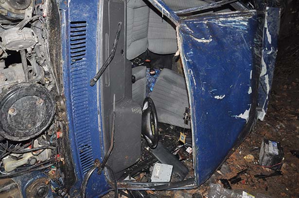 şarampole uçtu. Hurdaya dönen otomobilden çevredekilerin yardımıyla çıkan 3