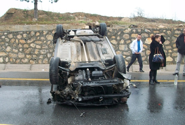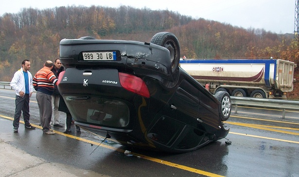 Akçakoca'dan Düzce istikametine giden Fatma Eker idaresindeki 81 DE 686 plakalı otomobil yolun kaygan olması nedeniyle bariyerlere çarparak takla attı. Fatma Eker, ters dönen otomobilden sağ çıkarken, otomobil hurdaya döndü. Jandarma ekipleri kazayla ilgili soruşturma başlattı.