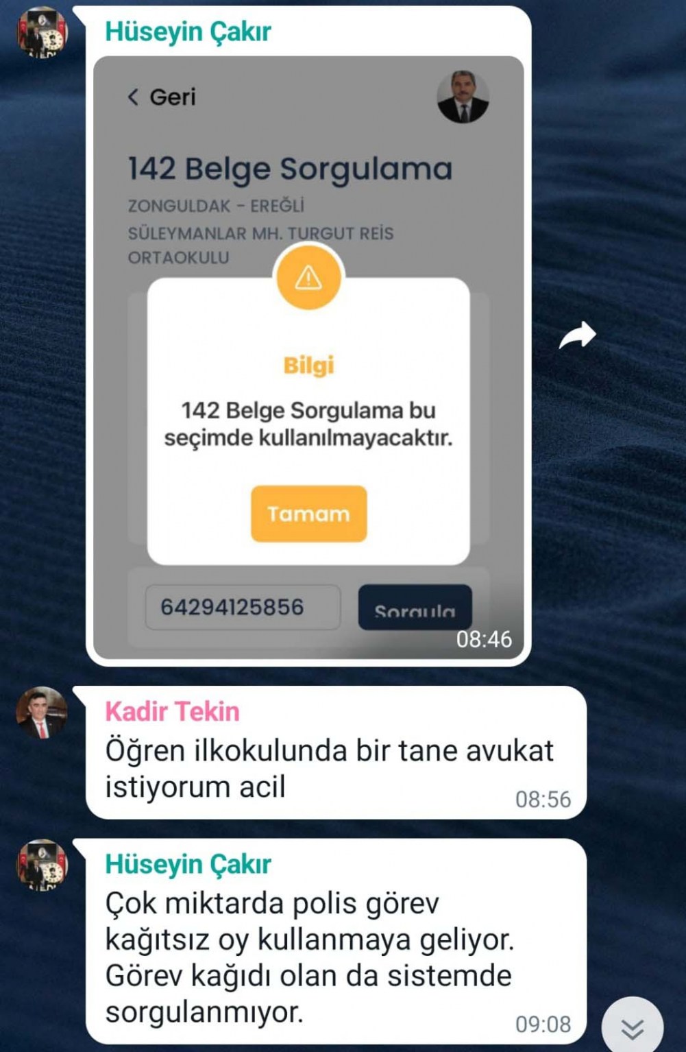 Kdz. Ereğli Belediyesi CHP Belediye Meclis Üyesi Adayı Hüseyin Çakır, görevli olduğu okulda kalp krizi geçirerek hayatını kaybetti. Belediye Başkanı ve CHP Belediye Başkan Adayı Halil Posbıyık, hastaneye gelerek açıklamalarda bulundu. Hüseyin Çakır’ın “çok miktarda polis görev kağıtsız oy kullanmaya geliyor. Görev kağıdı olanda sistemde sorgulanmıyor” diye bilgi verdikten 10 dakika sonra fenalaşarak hastaneye kaldırıldığını belirterek; “Maalesef Hüseyin çakır’ı kaybettik. O bizim demokrasi şehidimizdir. Bugün sandıklara sahip çıkmak Hüseyin çakır kardeşimizin vasiyetini yerine getirmektir” dedi.
