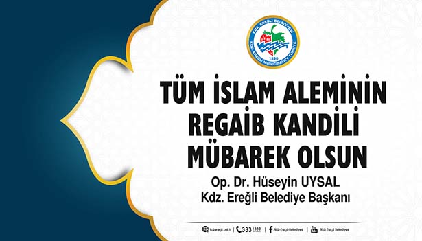Karadeniz Ereğli Belediye Başkanı Hüseyin Uysal, 22 Mart Perşembe akşamını 23 Mart Cuma gününe bağlayan gece idrak edilecek olan Regaib Kandili'ni kutladı.