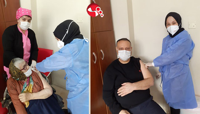 Gün içerisinde yapılan aşılama da huzur evi ve çocuk esirgemede bulunan, 35 yaşlı ve 20 personel olmak üzere toplamda 55 kişiye aşıları yapıldı. İlçe Sağlık Müdürlüğünden koronaVac aşısı olmak için randevu alan vatandaşlar ise gün içerisinde evlerinde aşılarını oluyor. 85 yaş üstü ve aşı olmak isteyen vatandaşların ise randevularını alarak aşılarını olmalarını istendi.