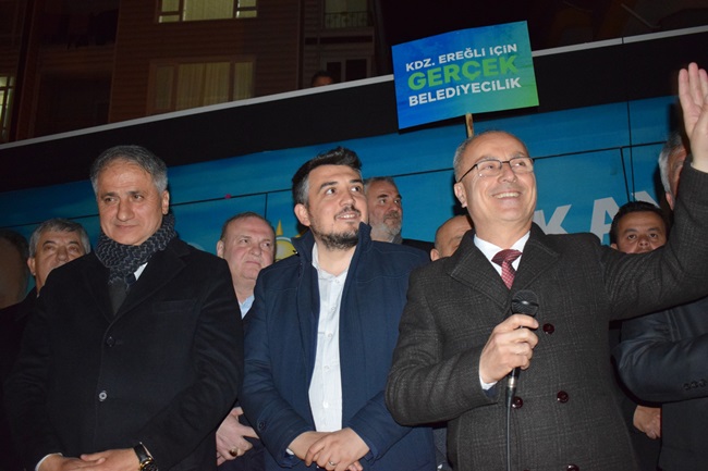 Kdz.Ereğli Belediye Başkanı İbrahim Sezer:” Ereğli’mizde yıllardır hizmet bazında hizmetlerden yetersiz kalıyorsunuz. Bizler Millet Bahçesi ile spor alanları, mesire alanlarının yanında gençlerimizin etkinlikler yapabileceği alanları inşa edeceğiz. Bizler sizler için 30 yıldır aynı düğün salonunu kullanmak zorunda kaldığınızı biliyorum. Birçok mahallemize modern düğün salonları inşa edeceğiz. Kavaklık Mahallesi’nde vatandaşın ceninden 1 kuruş çıkmadan Kentsel Dönüşüm gerçekleştireceğiz. Botbaşı’na içinde kütüphanesi, nikah salonu, sineması, konferans salonları olan Kültür Sanat Merkezi yapacağız. Bizler kamyonlar garajı denen bölgede yine içinde nitelikli ustaların yetişeceği, içerisinde eğitimler verileceği Teknopark Bilim İnovasyon Eğitim ve Arge Merkezi kuracağız. Bizler Engelsiz Yaşam Merkezi, Spor Tesisleri, Mesire Alanları, Yaşlı Bakım ve Rehabilitasyon Merkezleri kuracağız. Yıllardır yapılamayan Kent Meydanımızı ve Sahilimizi en güzel şekliyle yapacağız. Kısacağı kaybedilen yıllarımızı kazanmanın tam zamanı diyorum. Baştan dediğim gibi sizin bu enerjiniz ile başaramayacağımız hiçbir şey göremiyorum “dedi.