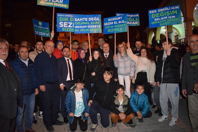 Ereğli’nin her bölgesinde Ereğli Halkı tarafından sevgi ve inançla karşılandığını ve Halk buluşmalarında sorunları dinlediklerinde ve halkın kendilerine verdikleri destekler karşısında çıkardıkları sonucun “Ereğli Halkı Değişime Hazır” yönünde olduğunu belirten Sezer: “Sayılı günler kaldı. Bizler sizin karşınızda hizmet verecek tek kişiyiz. Birileri gibi çift adayla çıkmadık. İyi Parti gerçek adayın sözcülüğünü yapan bir eski belediye başkanı var. Bizler oyunlarla oy toplama peşinde değiliz. Açık, net, şeffafız. Sizlerin bana olan inancını asla boşa çıkarmayacağım” diyerek sözlerini bitirdi.