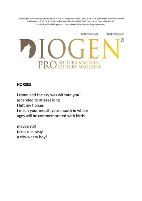 ABD'de 15 yıldır aylık olarak yayınlanan "DIOGEN pro culture magazine" dergisi Şubat 2024 sayısında şair İbrahim Tığ'ın 7 şiirine yer verdi.