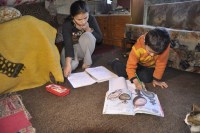 Konuşurken ağlayan 8 yaşındaki Ramazan'ın en büyük isteği ise yeni bir ayakkabı ve ceketinin olması. Babasının kendisine sadece bir kez yeni ayakkabı alabildiğini belirten Ramazan Akyüz, "Ben kalem, defter, kağıt istiyorum. Okumak çok güzel. Herkes çok seviniyor. Hiç ceketim yok, hiç ayakkabım yok. Babam bir defasında para getirmişti, biz de çarşıya gittiğimizde o zaman ayakkabı alabilmiştik" dedi.