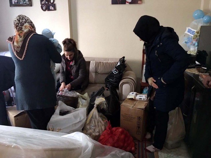 eşya, gıda malzemeleri, çocuk bezi ve maması gibi yardım paketlerimizi evlerine