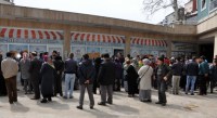 Banka önünde 110 kişiye gıda dağıtımı öncesi konuşan Belediye