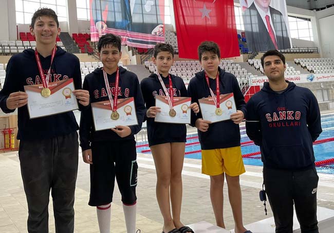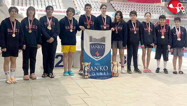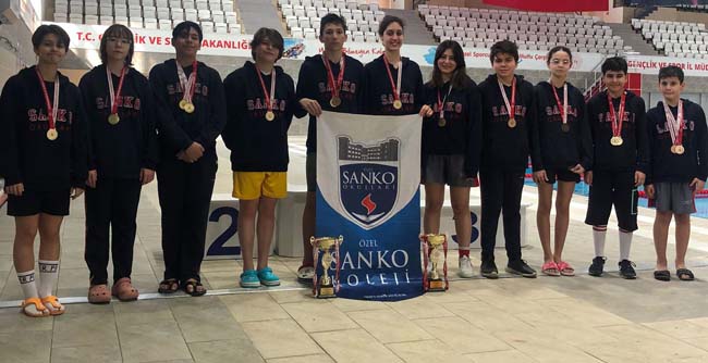 Gaziantep Olimpik Yüzme Havuzunda düzenlenen yarışmada, kızlarda Defne Su Demirbakan, Beril Tanrıtanır, Duru Kayın, Zeynep Karakuşoğlu, Nur Zorkirişçi ve Lara Çehreli bireysel yarışlarda 15 altın, 8 gümüş ve 5 bronz madalya kazandı, toplam sıralamada il birincisi olan kızlar takımı SANKO Okulları flamasını gururla dalgalandırdı.