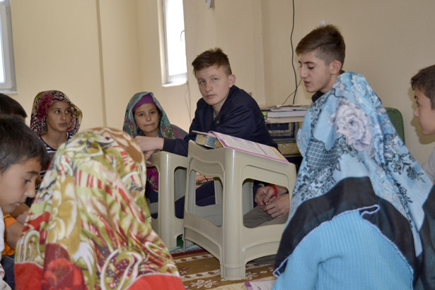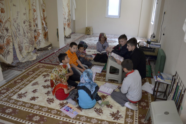 İKİ GENÇ GÖNÜLLÜ OLARAK 20 ÖĞRENCİYE KUR'AN-I KERİM ÖĞRETİYOR