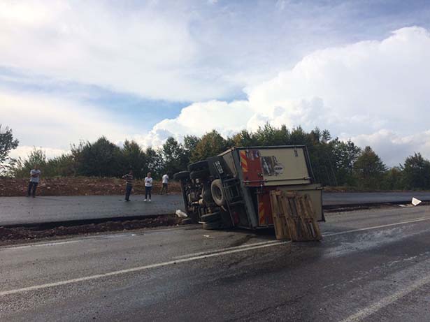 Edinilen bilgiye göre, Ereğli'den Zonguldak istikametine giden Mehmet Ali Kipici idaresindeki 54 TD 077 plakalı kamyon, kayganlaşan yolda sürücüsünün direksiyon hakimiyetini kaybetmesi sonucu devrildi. Mobilya yüklü kamyonun sürücüsü kazadan şans eseri yara almadan kurtulurken, kamyonda ve içerisindeki mobilyada hasar meydana geldi.