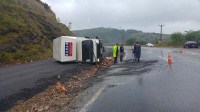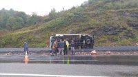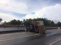 Aynı bölgede meydana gelen bir başka kazada da kayganlaşan yolda direksiyon hakimiyetini kaybeden sürücünün kullandığı gıda yüklü kamyon devrildi. Yola yağ dökülmesi sonucu meydana gelen kazada yaralanan olmadı. Meydana gelen kazalar sonrası polis ve jandarma ekipleri yol üzerinde önlem alırken, karayolları ekipleri de kumlama çalışması yaptı.
