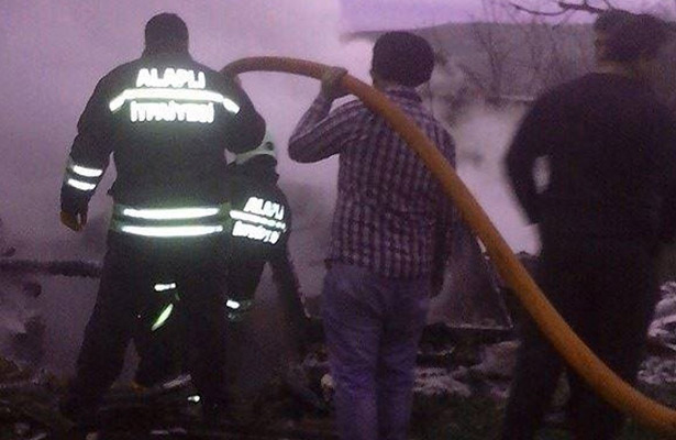 Tokuşlar Mahallesi'nde, Ali Yılmaz'a ait iki katlı ahşap yapı henüz belirlenemeyen bir nedenle yanarak kullanılamaz hale geldi.