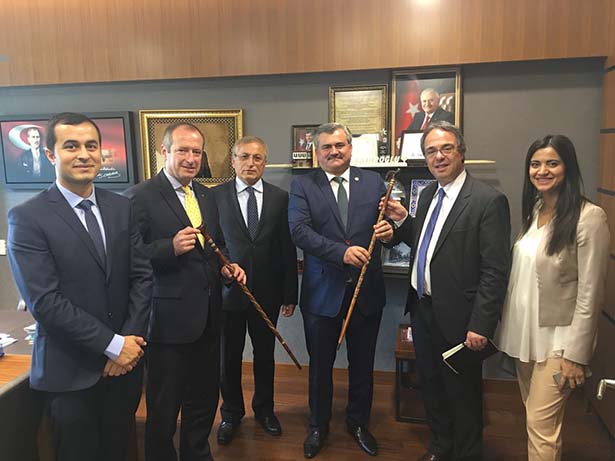 Alman Vekil Wıttke'ye Devrek ilçemizin meşhur bastonunu takdim eden ve ziyaretin ardından heyet ile birlikte hatıra fotoğrafı çektiren Çaturoğlu, bu randevunun gerçekleşmesinde emeği geçen Adem Çukur kardeşime de teşekkür ediyorum dedi.