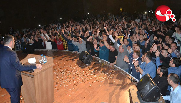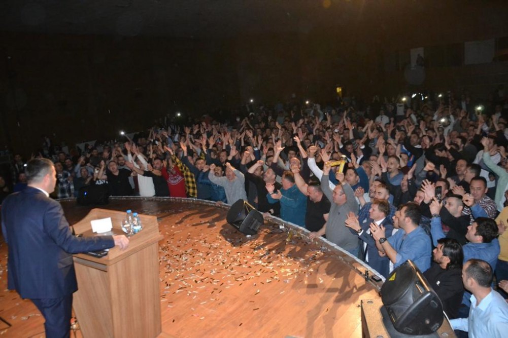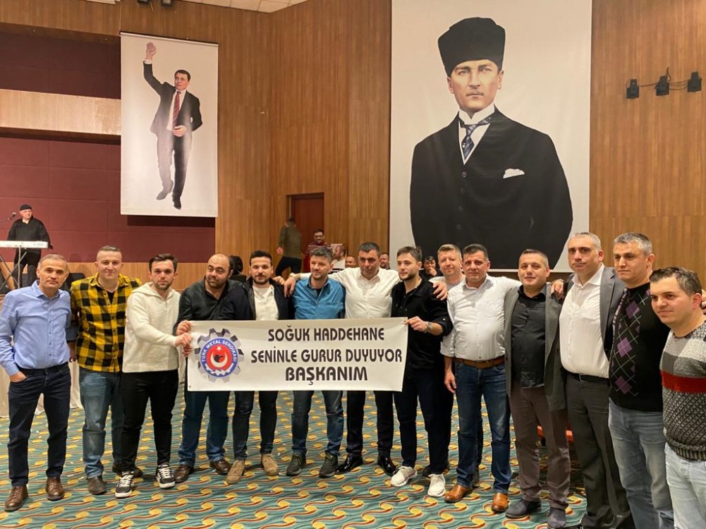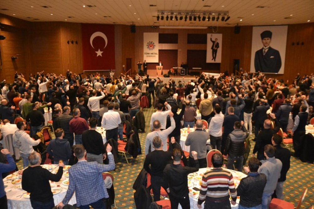 Yılmaz’ın üyelere hitaben konuşması sırasında işçiler yine sahnenin önüne yürüyerek Türk Metal, Türk Metal Lideri Pevrul Kavlak ve Şube Başkanı Yakup Yılmaz lehine sloganlar attılar.