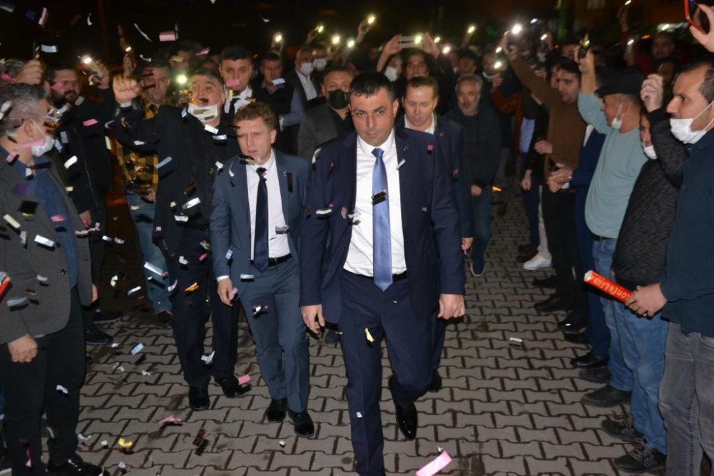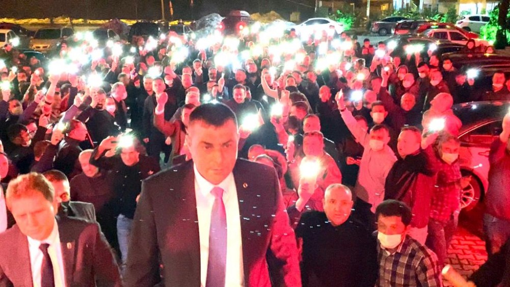 Gülüç Beldesindeki büyük Anadolu Ereğli Otel girişinde, bir önceki gibi meşaleler, konfetiler ve yakına cep telefonlarının ışıkları ile karşılanan Yılmaz’a bayanlar da çiçek takdim etti.