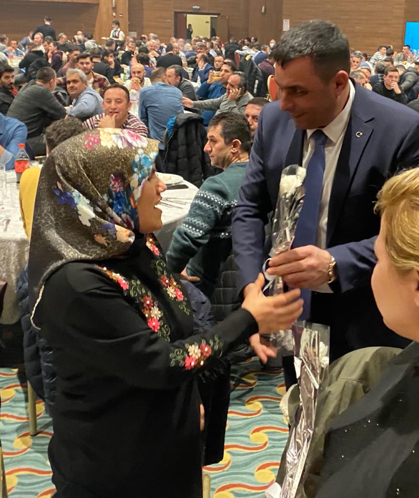 Yılmaz’ın, kadın işçi ve işçi eşlerine çiçek hediye ettiği gecede, yenilen yemeğin ardından çalan müzik eşliğinde eğlenildi.