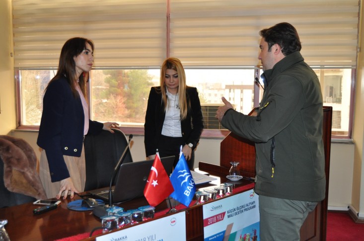 BAKKA Genel Sekreter Vekili Elif Acar kısa açılış konuşmasının ardından 2018 Yılı Küçük Ölçekli Altyapı ve Sosyal Kalkınma Mali Destek Programları Bilgilendirme sunumunu gerçekleştirdi. Sunumda programın amacı, öncelikleri, önceliklerle ilişkili olarak sunulabilecek örnek proje konuları, destek tutarı, uygunluk kriterleri, başvuru şekli ve yapılabilecek işlemler, bilgi edinme yöntemi ve yardım masası hizmetleri ile 22-30 Ocak tarihleri arasında gerçekleştirilecek eğitim toplantıları hakkında bilgi verilmiştir. Acar, sunumun ardından katılımcıların soruları yanıtladı.