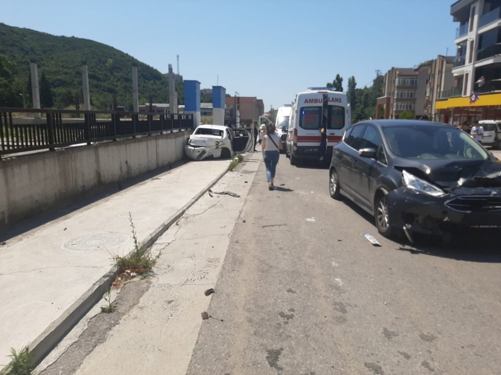 Karadeniz Ereğli’de iki otomobilin çarpışması sonucu 2'si çocuk 3 kişi yaralandı, kaza bir işyerinin güvenlik kamerasına yansıdı.