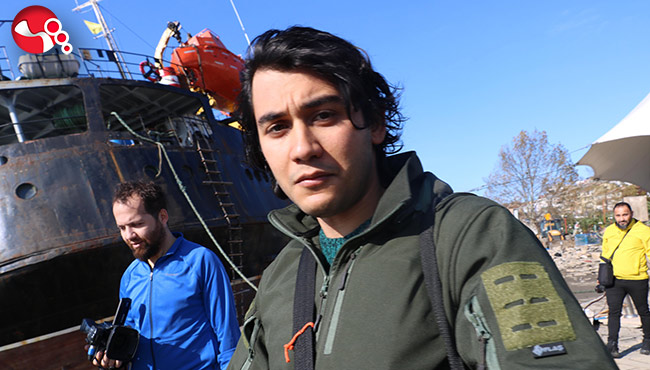 “Gemi ortadan bölündü sürüklenmeye başladı. Şanslıyız ki biz ölmedik. Gemi çevrilseydi biz su altında kalacaktık. Ben köprü üzerine çıkarak SOS sinyali verdim. Çok zor durum yaşadık. O anlarda canımı kurtarmak istedim. Zorla kurtulduk. Şimdi sağız. Onların battığını anonsunu duyduk. Anonsta yardım istiyor. Can çekişiyor. Çok zor durum yaşadık. Onlara yardım edemedik. Ben dümende vardiya tutuyordum. Batıp gitsek bizi bulsunlar diye o videoyu çekmiştim. Yardım istedim. Bu şaka değil. Ben dalgıç gemiciyim. Hayatta kalmak için SOS sinyali verdim. Deniz Kuvvetleri ve Sahil Güvenliğe yardım istedim. Kimse gelemezdi çok rüzgar vardı” diye o anları anlattı.