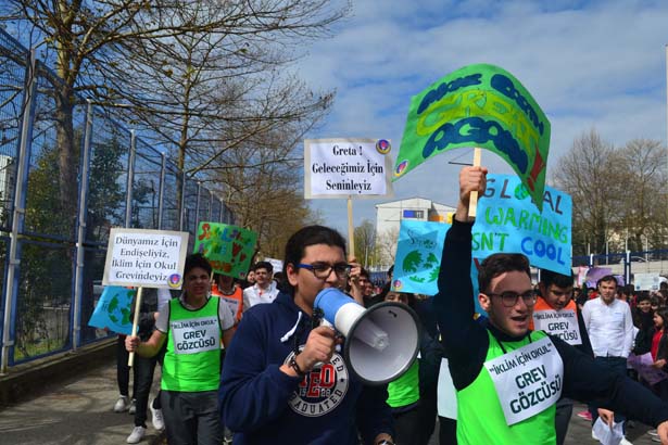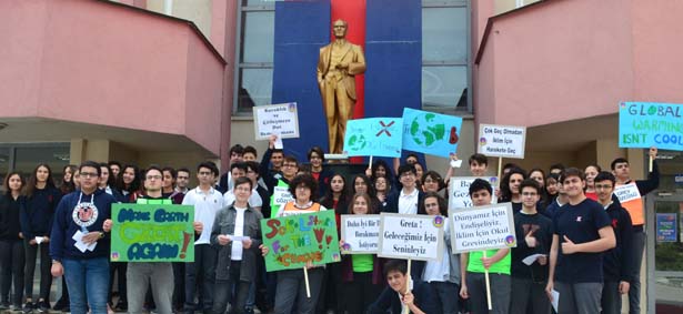 Bizler, TED Kdz. Ereğli Koleji Vakfı Özel Okulları öğrencileri olarak, lise öğrencisi Greta Thunberg'in başlattığı 'Gelecek için Cuma Günleri' kampanyası çerçevesinde İklim İçin Okul Grevi hareketini destekliyoruz. İklim değişikliğini durdurabilecek son nesil olduğumuzu biliyoruz. Greta'nın dediği gibi iklim adaleti ve yaşayan gezegen istiyoruz. Bizlere daha iyi bir dünya bırakılmasını istiyoruz. Bu yüzden bugün İklim İçin Okul Grevindeyiz."