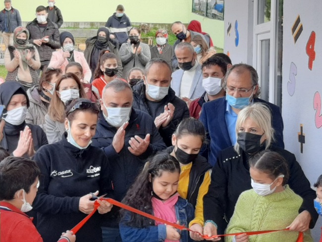 2 yıldır yaşam mücadelesi veren ancak yaşama tutunamayan 13 yaşındaki Lösemi Hastası Erhan Ensar Öztürk’ün adı verilen Kütüphanenin açılışı, İl Milli Eğitim Müdürü Aldoğan, İlçe Milli Eğitim Müdürü İsmail Korkmaz, CHP İlçe Başkanı Eylem Ertuğ Ertuğrul, CHP İlçe Kadın Kolları Başkanı Naile Bingöl, Okul Müdürü Pınar Akbaş, Fenerbahçe Kulübü Karadeniz Ereğli Şubesi ve Karadeniz Ereğli Fenerbahçe Taraftarları Derneği Başkanı Serdar Özbek, okul öğretmenleri, öğrenciler, öğrenci velileri, projeye destek olanların hazır bulunduğu kalabalıkta, Karaca ve çocuklarla birlikte yapıldı. Açılışın ardından ise kütüphaneye kitap bağışında bulunması dolayı Özbek’e plaket takdim edildi.