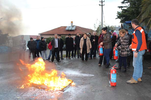 çekilerek tereddüt etmeden yangına müdahale etmenin önemi de gösterilerek anlatıldı.