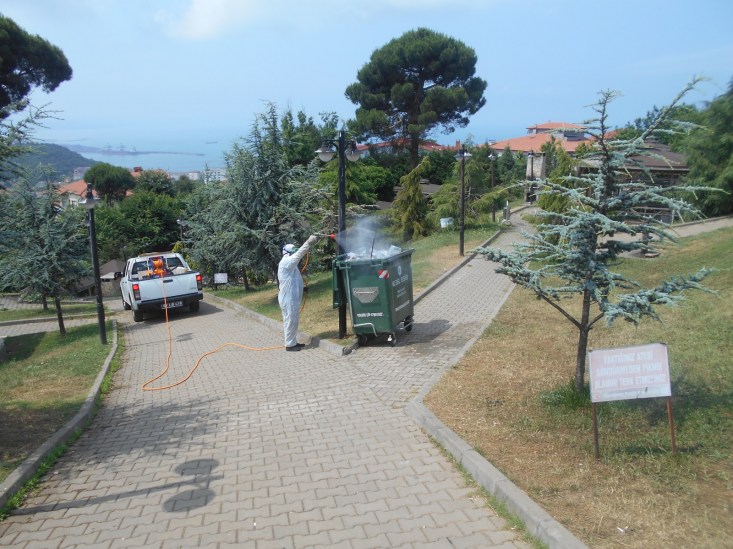 alanlarında, çöp kutusu ve konteynırlarda, mazgallarda ilaçlama ve