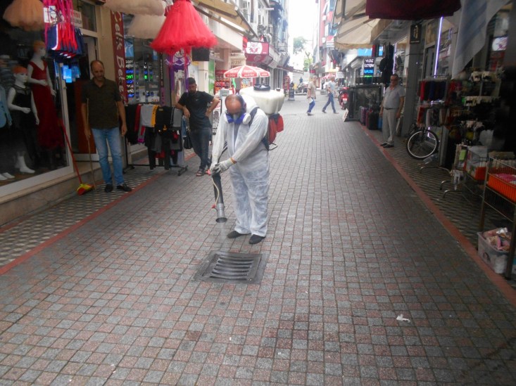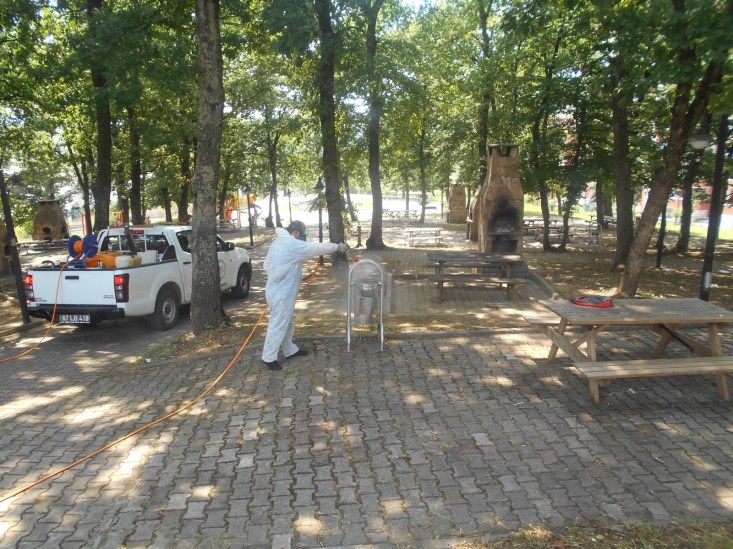 halkın uğrak noktalarında da ilaçlama ve dezenfekte çalışmaları yapılıyor.