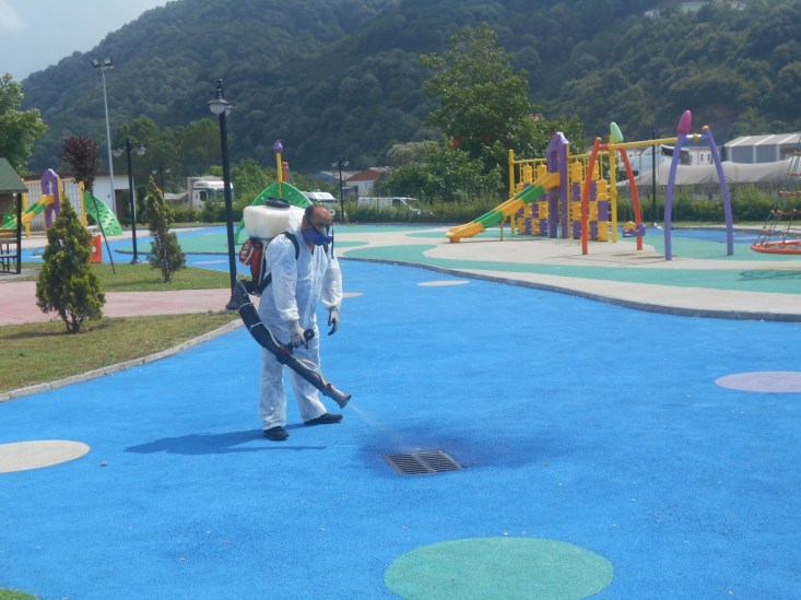 dezenfeksiyon işlemlerini periyodik olarak sürdürüyor.