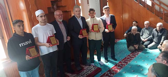 Zonguldak'ın Devrek ilçesinde Ramazan ayı süresince mukabele okuyan ilçe müftüsü ve hafız öğrencilere teşekkür plaketi takdim edildi.