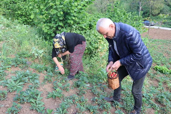 Kdz. Ereğli ilçesinde demir-çelik fabrikasından emekli olan İsmet Koç eşi Ayşe Koç ile tarlasında bu yılın ilk çilek hasadını yaptı. Geçtiğimiz yıl aşırı yağışlar nedeniyle az üretilen çileğin bu yıl da kuraklık nedeniyle veriminin düşük olduğunu anlatan İsmet Koç, Osmanlı Çileğinin de çok azaldığını söyledi. Koç, "2024 çilek sezonu Kdz. Ereğlimize hayırlı olsun. Bu gün ilk hasadımızı topladık gördüğünüz gibi. Burası Kışla Mahallesi İnallı Sokak. Bu çilek Osmanlı Çileğinin kardeşi alo çileği. Allah nasip ederse 15-20 gün içinde de Osmanlı Çileği çıkar. Geçtiğimiz sene havalar hep yağmurlu gitti, böcekler yedi. Bu senede havalar kurak gidiyor. Hava yağarsa çilek bollaşır" dedi.