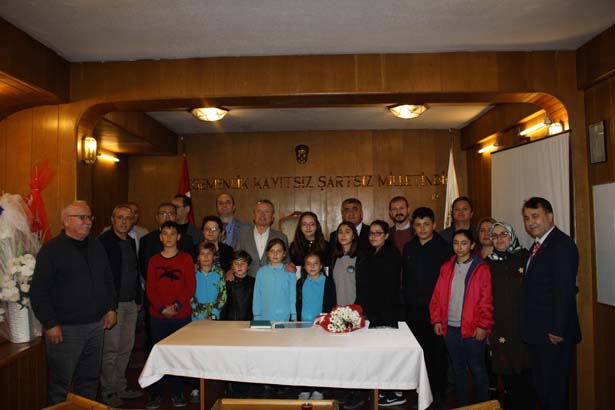 daha sonra Çocuk Belediye Başkanı Nisanur Dinçer'e mazbatasını teslim etti.