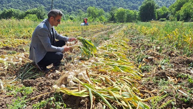 Zonguldak'ın Çaycuma ilçesinin Gemiciler Mahallesi’nde, üretici Satılmış Gedik’in tarlasında ilk kez makineli sarımsak hasadı gerçekleştirildi.