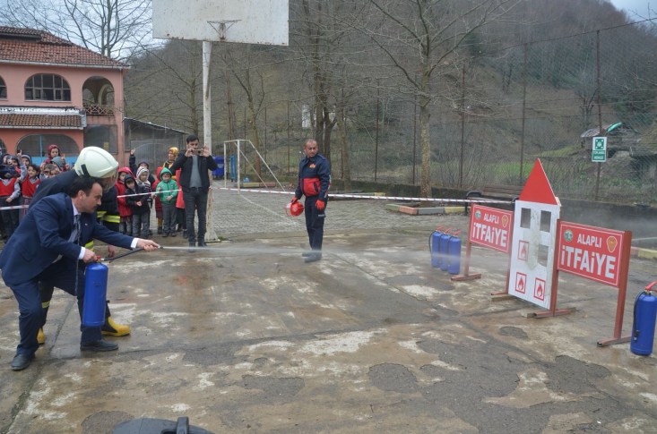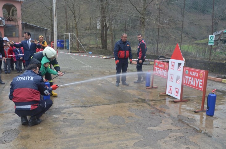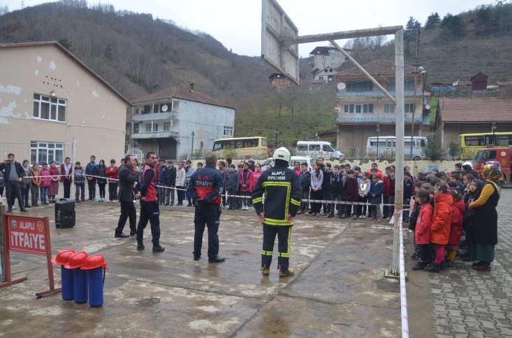 Zonguldak'ın Alaplı ilçesine bağlı Gümeli beldesi İlk ve ortaokulu öğrencilerine doğal afet ve yangın tatbikatı yapıldı. İlk kez tatbikata katılan öğrencilerin heyecanlı oldukları gözlenirken, Alaplı Belediyesi itfaiye müdürü Sinan Taşkın ve ekibi tarafından yangın ve doğal afet durumlarında neler yapacakları konusunda bilgiler aldılar.