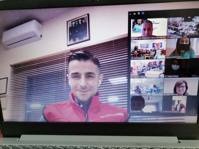 Moderatörlüğünü Fmv İstanbul Özel Ayazağa Işık İlkokulu’ndan Akın Hoşkilimci ile Kdz Ereğli Kepez Şehit Kader Acar İlkokulu öğretmenlerinden Serap Gündoğdu’nun yaptığı canlı platforma Karadeniz Ereğli İsmet İnönü İlkokulundan Fadime Türk, Karadeniz Ereğli Sinitli İlkokulu Hilal Durmaz Uzunoğlu, Karadeniz Ereğli Kepez Şehit Kader Acar İlkokulu’ndan Turgut Sağlam, Kahramanmaraş Pazarcık Mezra İlkokulu’ndan Harun Özdoğan , Adana Çukurova İMKB İlkokulu’ndan Melek Gökçe Yılmaz , Ordu Fatsa’dan Şehit Kerem Çalışkancı İlkokulu’ndan Resul Karabacak , Ankara Hakan Akbıyık İlkokulu’ndan Nihan Tezcan Ermiş , Konya Doğanlı İlkokulu’ndan Ömer Sağlam , İtalya Roma I.C.S. La Guistiniana’dan Anna Terasa Fiori ve Rita Bottari olmak üzere, öğrencileriyle birlikte sınıflarından çevrimiçi seminere katıldılar.