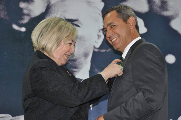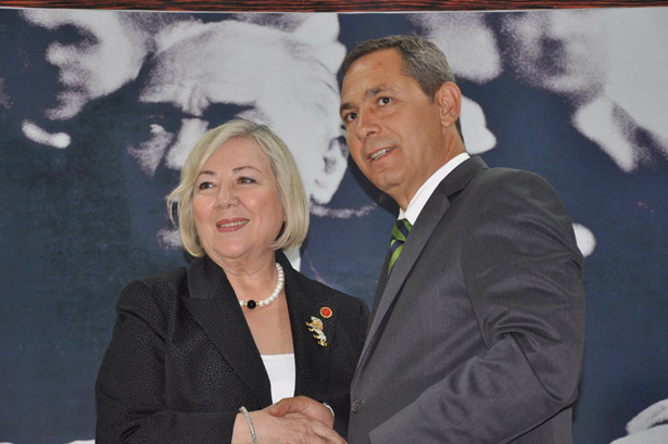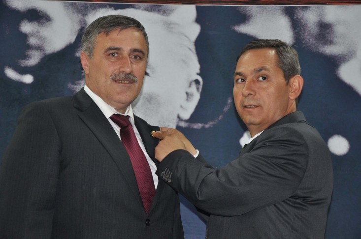 Karadeniz Ereğli Belediye Başkanı ve Meclis Başkanı Opr.D.Hüseyin Uysal'ın Belediye Meclis Üyelik rozeti de Cumhuriyet Halk Partili Belediye Meclis Üyesi Güler Demiroğlu tarafından takıldı.