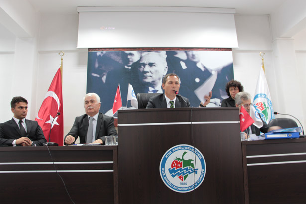 Karadeniz Ereğli Belediyesinin yeni başkan ve meclis üyeleri ilk meclis toplantısını yaptı. <br>Karadeniz Ereğli Belediye Meclisi'nin 2014 Nisan ayı ilk toplantısı Atatürk Kültür Merkezi Nikah Salonu'nda saat 11.00'de başladı.
