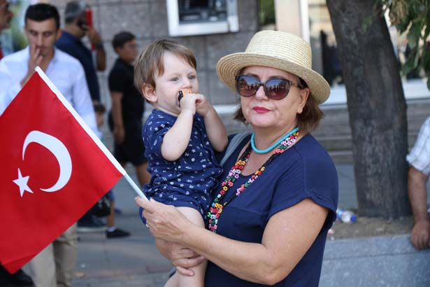 ellerindeki Türk bayrakları ile birlikte Zafer Bayramı'nın coşkusunu yaşadı.