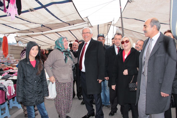 Posbıyık, Pazar ihtiyacını gören vatandaşlara da hal hatır sordu.
