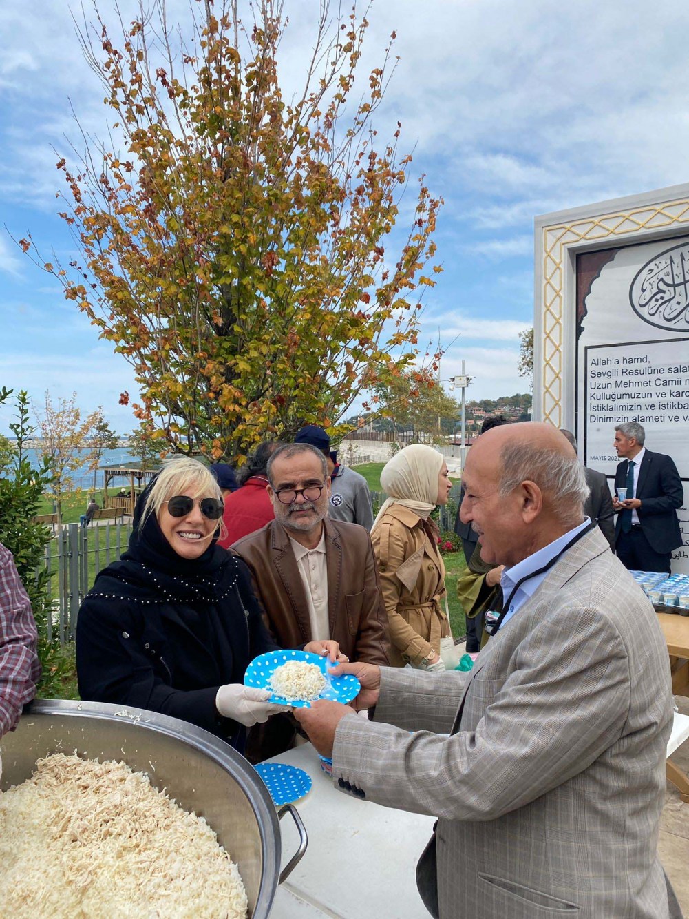 Protokol üyeleri cami çıkışında cemaate pilav ikramında bulunarak kandilini kutladı.