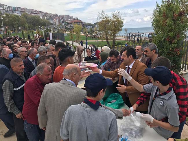 Zonguldak Şehit Gökhan Esen Proje İmam Hatip Fen ve Sosyal Bilimler Lisesi Mevlid Kandili dolayısıyla Uzun Mehmet Camii’nde tavuklu pilav dağıttı.