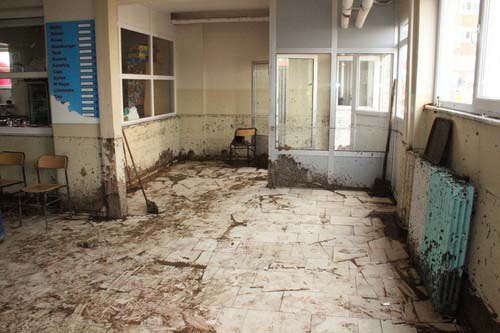 binasındaki kalorifer dairesi, kantin ve diğer odalar tamamen suyun altında