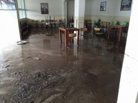 ilçesinde sağanak yağışta sular altında kalan İmam Hatip Lisesi'nde temizlik ve