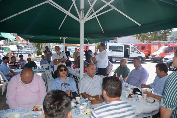 Başkan Uysal, 'Esnaf Buluşmaları' toplantıları kapsamında Pazaryeri esnafıyla yaptığı toplantının ardından Kışla Sanayi Sitesinde İtfaiye İstasyonu bahçesinde Elmatepe, Köseler ve Kışla Mahallesi Muhtarlarını, Kışla Sanayi Sitesi Kooperatifi Başkanı Adnan Tanrıkulu ve sanayi sitesi esnafını kahvaltılı toplantıda ağırladı.