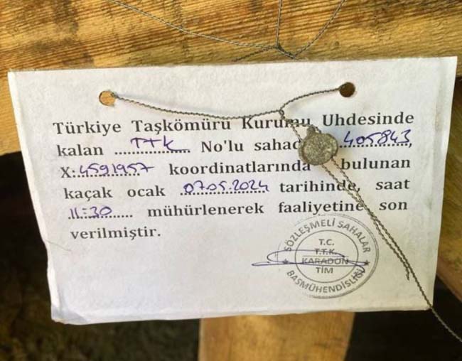 Söz konusu kaçak maden ocaklarının TTK ekiplerince imha edildi. Kaçak Maden Ocakları Orman sınırları içerisinde olduğundan ele geçirilen malzemeler Orman Bölge Müdürlüğü Ekiplerine teslim edildi.