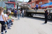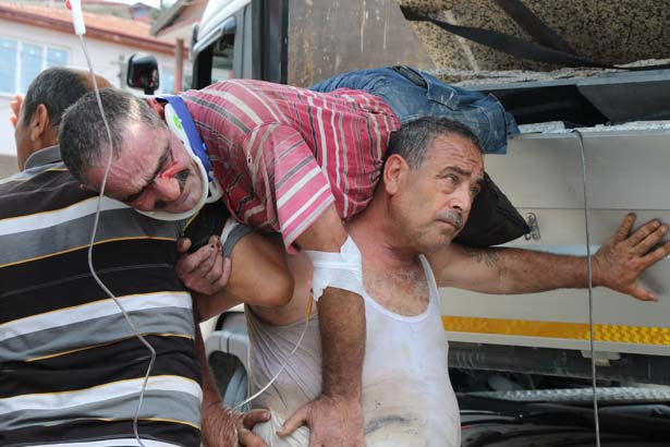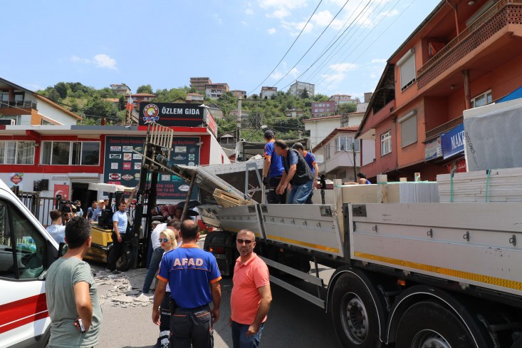 Zonguldak'ta 22 ton mermer yüklü tır, geri manevra yaptığı esnada halat koptu. Dorsede mermerlerle birlikte seyahat eden 45 yaşındaki Mehmet Şen'in ayakları mermerlerin altında kaldı. Adeta enkaz anının yaşandığı olay yerindeki yaralı, mermerin forklift ile kaldırılması üzerine sıkıştığı yerden kurtarıldı.