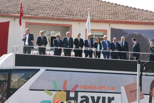"Yüz kırk yıldır ileriye doğru giden, güzelliğe doğru giden, demokrasiye doğru giden bir mücadelemiz var. 16 Nisan'da bunu ya yok edeceğiz, ya kurtaracağız. Burası Anadolu'dur, burası Trakya'dır. Ne zulümler gördü, hayır dedi bu millet. Ne işkenceler, ne işgaller gördü, bu millet hayır dedi. Bu millet umutsuzluğa, çaresizliğe, açlığa hayır dedi. Baskıya Hayır dedi.